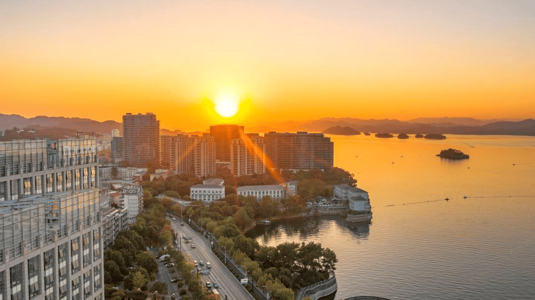 淳安千岛湖开元名庭酒店位于千岛湖镇中心,毗邻银泰城商业综合体,地理位置优越,交通便利。酒店以“自然、人文、艺术”为设计理念,将千岛湖的山水元素融入现代简约风格,打造出舒适雅致的居住空间。酒店健身房、棋牌室、儿童乐园、KTV等服务一应俱全。酒店周边超多娱乐项目,步行还可直达秀水广场、湖滨公园吃喝玩乐都能一站式轻松搞定。酒店为了让宾客更好地欣赏千岛湖美景特意在5楼打造了一个观景外平台。傍晚时分,在这里吹吹湖畔凉风看一场唯美日落,惬意又悠然,度假感飙升!